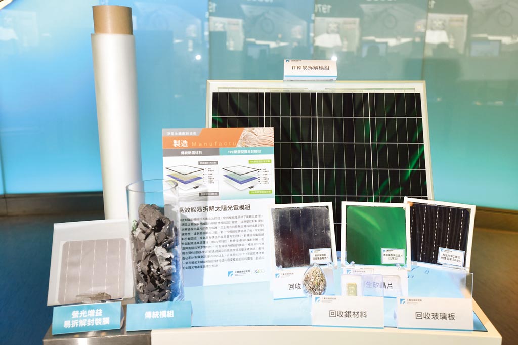 工研院開發(fā)「高效能易拆解太陽(yáng)光電模組」,可有效減廢與提高汰役太陽(yáng)能板循環(huán)價(jià)值。圖/工研院提供