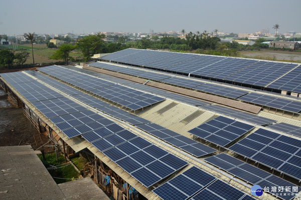 牧場屋頂裝設(shè)太陽能板種電,一舉數(shù)得。(記者/黃芳祿攝)