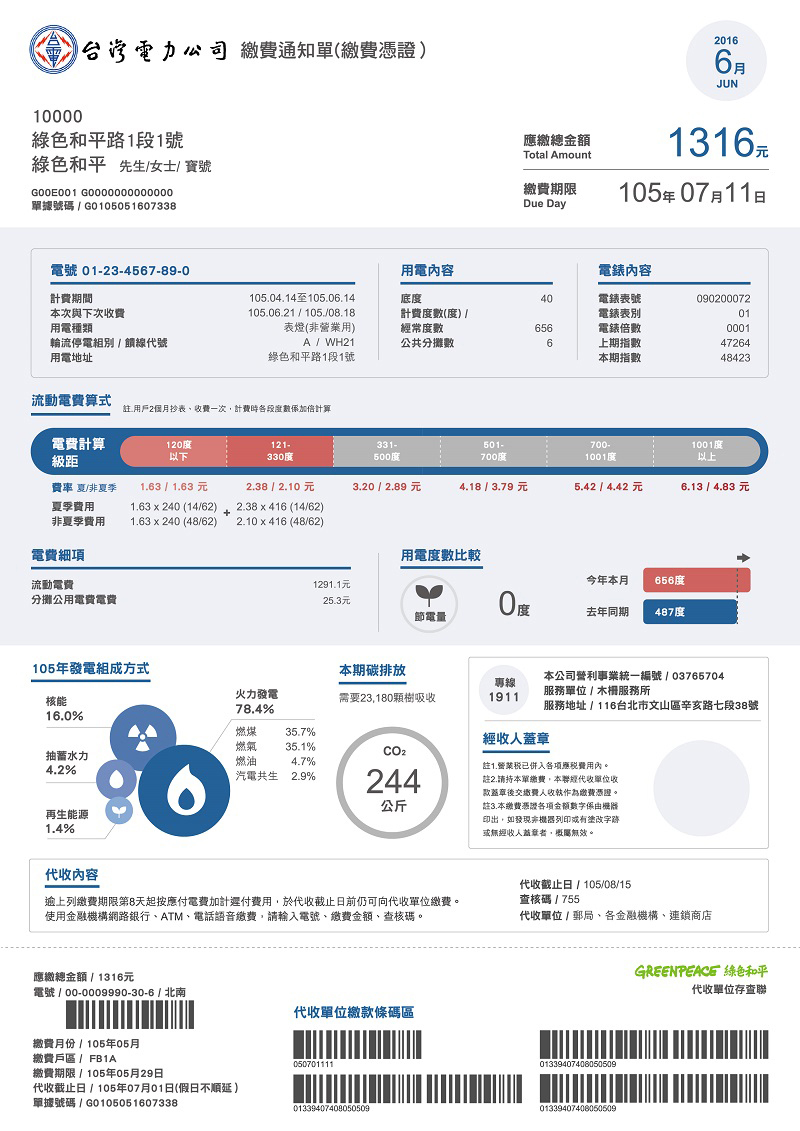 綠色和平重新設(shè)計(jì)電費(fèi)單