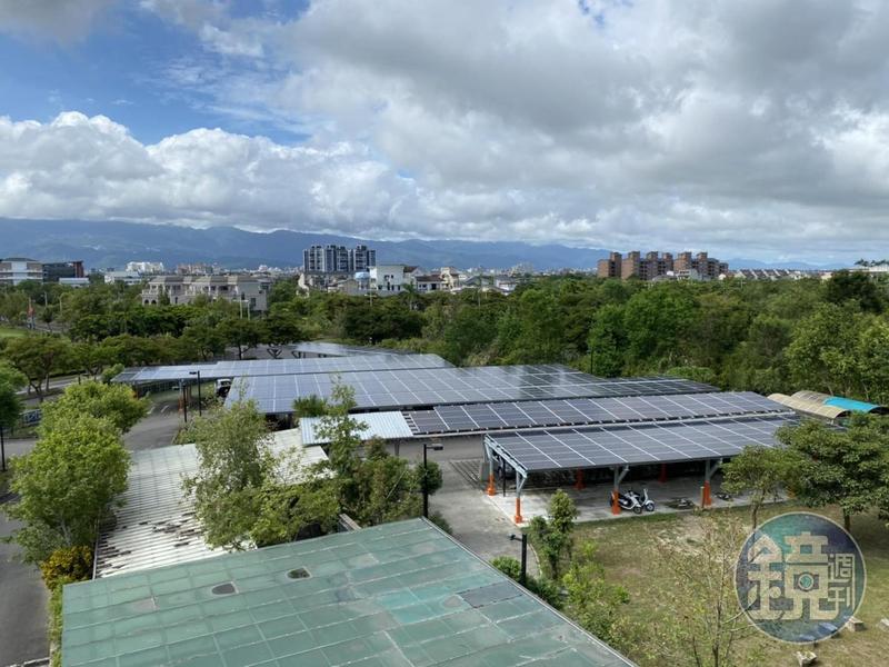 宜檢擴(kuò)大興建兼具停車(chē)棚的太陽(yáng)能板發(fā)電系統(tǒng),還可讓洽公民眾不必?fù)?dān)心愛(ài)車(chē)風(fēng)吹雨淋。